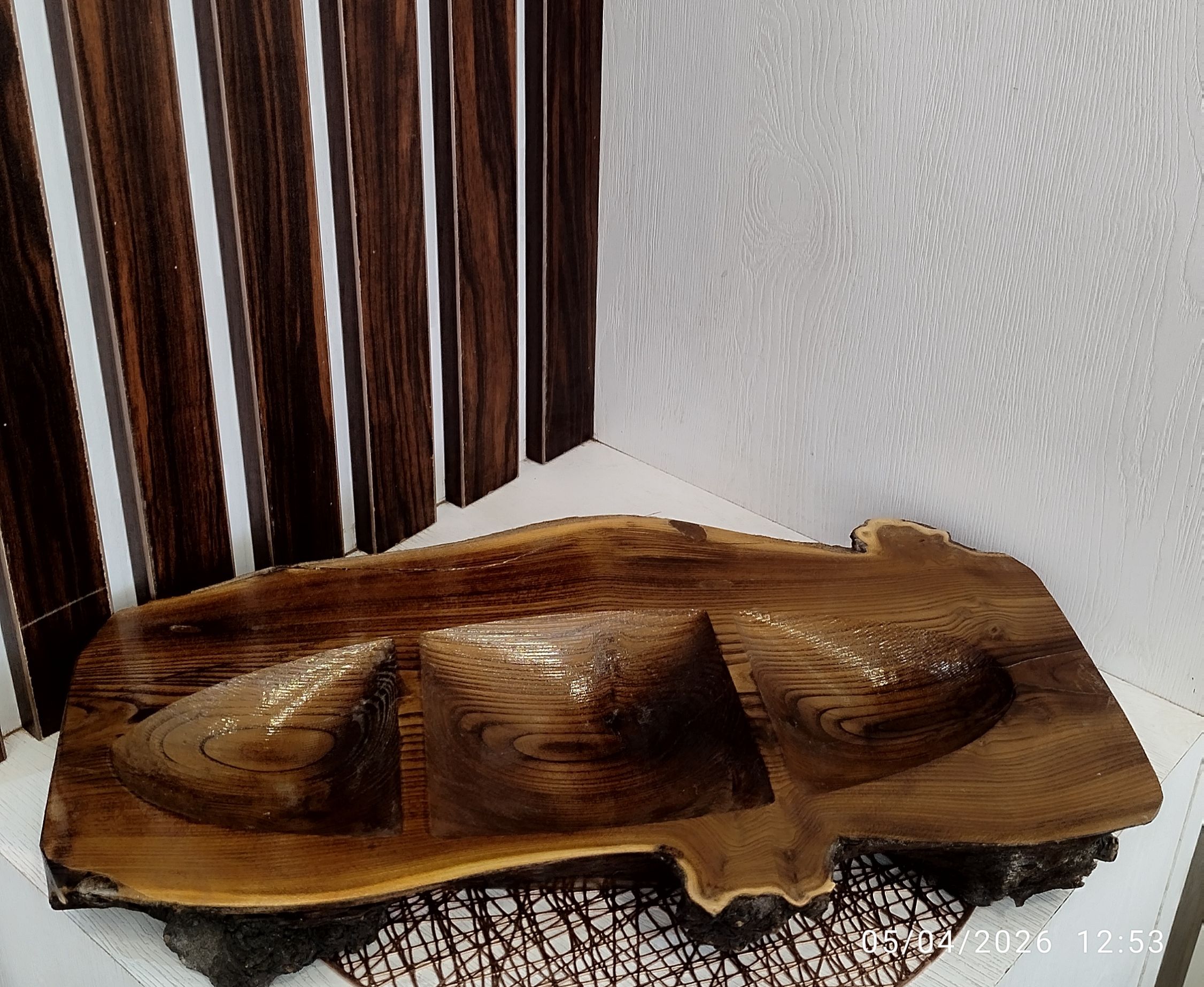 محصولات ما جنس چوب طبیعی میباشد وهیچ دو کار مثل هم نمیباشد چون چوب دارای گره، رگه و رنگ متفاوت می باشد پس توقع کار عینا مثل عکس نداشته باشید چون از محصول فقط یه دونه اش عکاسی شده😊نور محیط، عکس دوربین و دید هم فرق میکنه