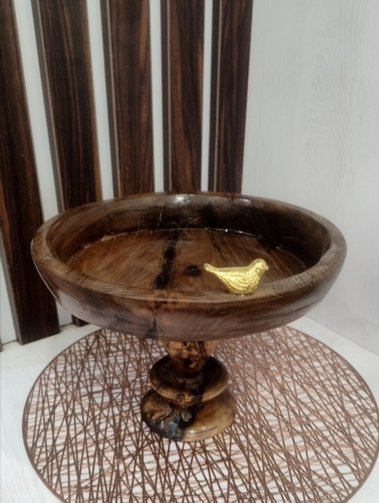 میوه خوری گرد چوبی پایه دار لب گنجشک طلایی چوب گردو